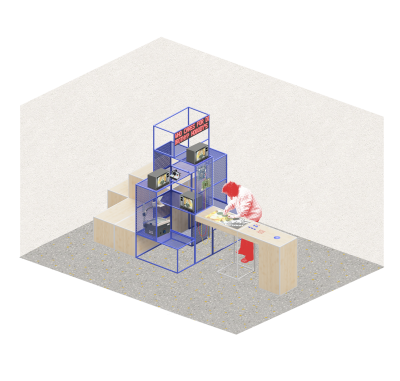 Građen je od sustava jednostavnih elemenata koji stvaraju zone za pohranu, istraživačko-produkcijske punktove i interpretativne točke. Pohranjena građa se koristi kao aktivator kreativnosti, kulturno-umjetničke produkcije i djelovanja. Preusmjeravanje kreativnog potencijala u produktivnost ostvaruje se kroz Istraživačko-produkcijske punktove koji potiču na istraživanje, manipulaciju i kombiniranje raznih vrsta građe kroz spajanje suvremenih i starih tehnologija i alata što dovodi do stvaranja nečeg novog, multimedijskog, hibridnog.