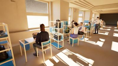Sustav namještaja Limina osmišljen je s ciljem prilagodbe različitim potrebama studenata FER-a, od individualnog do grupnog rada. Čine ga četiri osnovna elementa: stol, stolac bez naslona, stolica i polica/pregrada. Drvo unosi toplinu i svježinu u prostor, dok perforirani lim služi kao sustav za pohranu.