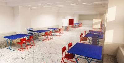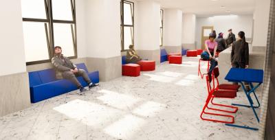 Sustav Tandem studentima FER-a omogućuje bolje uvjete za rad, druženje i svakodnevno korištenje prostora. Ime sustava prati oblikovnu logiku svih elemenata, koji su kreirani pomoću dvije linije koje se spajaju na jednom mjestu. Sastoji se od osam elemenata kroz koje se rješavaju niz problema i potencijala prostora. Manji stol omogućuje individualan rad, dok veći model podržava 2 ili više korisnika. Oba stola imaju dijagonalne noge koje su prilagođene mramornim klupama, čime se omogućuje lakši pristup radnom mjestu. Visoke stolice koriste se uz povišene površine i pultove, aktivirajući prethodno neiskorištene zone. Nedostatak organizacije u dugim hodnicima riješen je pregradom koja ih dijeli na funkcionalne cjeline, a uz to nudi prostor za odlaganje osobnih stvari i ploču za pisanje. Stanica za punjenje omogućuje studentima sigurno punjenje uređaja bez zahvata u infrastrukturu, koristeći postojeće utičnice. Odsutnost kvalitetnog mjesta za druženje i odmor riješen je kroz modularne fotelje i taburee koji su prilagodljivi raznim prostorima i načinima korištenja.