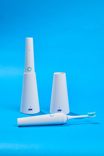 Obična električna četkica je problematična. Nestabilna je, ima nedostupne i nezamjenjive dijelove, kratak vijek trajanja baterije i nezgrapnu formu kad je riječ o odlaganju proizvoda.nNova četkica kao integralni dio ima stalak koji funkcionira kao uređaj za dezinfekciju, punjač, i svojevrsni putni poklopac za glavu četkice. Takav hibridizirani dodatak eliminira potrebu za dodacima (stalak, punjač, dezinfektor), pospješuje funkcionalnost i iskustvo korištenja četkice. Jednostavno rukovanje i intuitivna upotreba nove su promišljene značajke četkice za zube. Okretanjem nove električne četkice za 180°, možete promijeniti funkciju punjenja u funkciju dezinfekcije (bez ikakvih posebnih radnji) i nema potrebe kontrolirati sve procese korištenja.