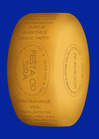 Plakat za Feštu od sira, koja se od 2015. godine održava u Kolanu na otoku Pagu, koncipiran je kao prikaz onog glavnog što nas tamo očekuje, a to je sir, koji na sebi sadrži sve bitne informacije o festivalu. U urbanom prostoru sirevi preuzimaju grad.