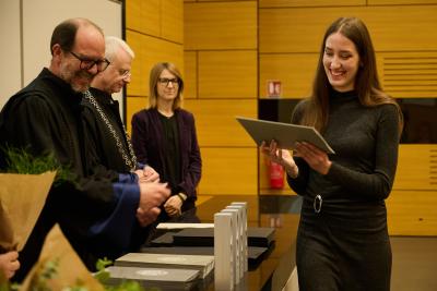 Godišnju nagradu Odsjeka Studij dizajna na razini diplomskog studija s usmjerenja Industrijski dizajn dobila je studentica KORA ROGINA za rad Media Waste iz 2. sem., pod mentorstvom izv. prof. art. Andree Hercog i asist. Nataše Njegovanović.