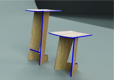 Ovaj funkcionalni stolac osmišljen je za dinamične javne prostore poput knjižnica i čitaonica. Zahvaljujući patentiranom mehanizmu, sjedalo se može podignuti, što omogućuje jednostavno umetanje jednog stolca u drugi. Takvo stackanje štedi prostor i olakšava spremanje većeg broja jedinica. Postoji i verzija u visini barskog stolca, prilagođena za viši tip sjedenja. Vizualnu prepoznatljivost naglašava plavi rub, a cijeli je stolac izrađen od izdržljive brezine šperploče.